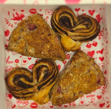 2 Strawberry Scones & 2 Cinnamon Roll Hearts.